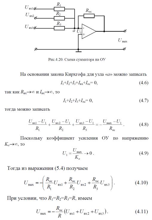 Суммирующий усилитель является разновидностью инвертирующего масштабного усилителя.