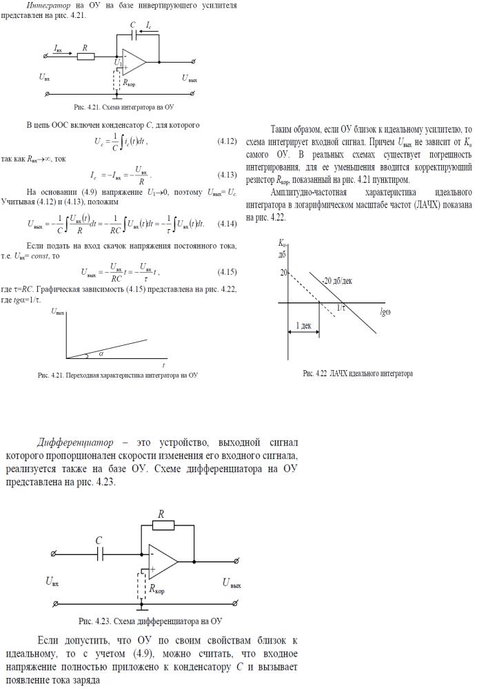 (4.1) следует, что ОУ воспринимает только разность входных напряжений, называемую дифференциальным входным сигналом, и нечувствителен к любой составляющей