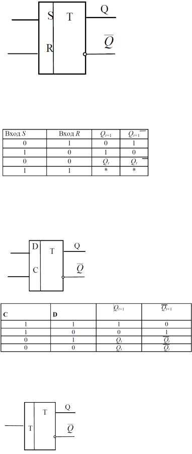 Примечание. R и S - информационные сигналы на входе триггера; Qt, Qt+1- состояние триггера соответственно до и после прихода информационных сигналов; * - неопределенное состояние триггера. В отличие от