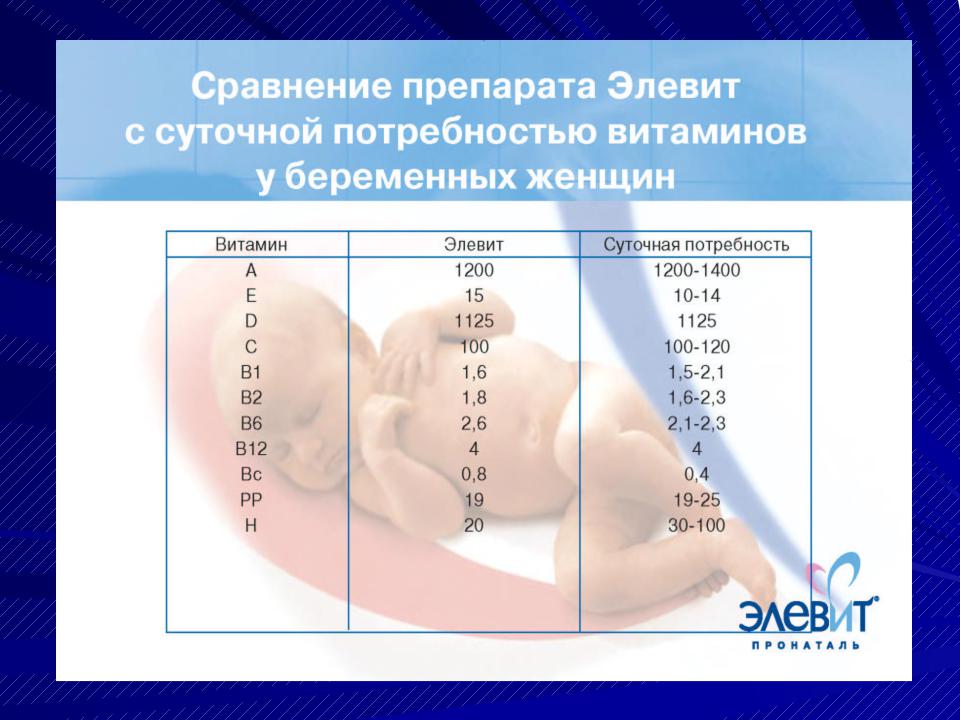 •Двойное слепое, рандомизированное, плацебо-контролируемое исследование по Элевит Пронаталю*