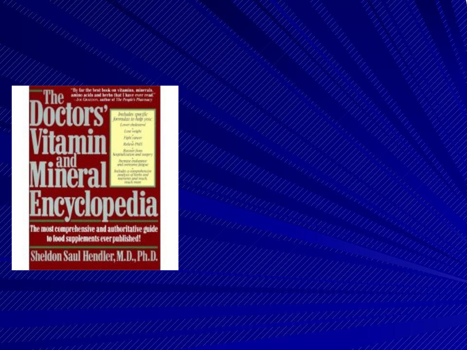 'The Doctor's Vitamin and Mineral Encyclopedia" (Simon & Schuster, 1990) S.Hendler, M.D., Ph.D.