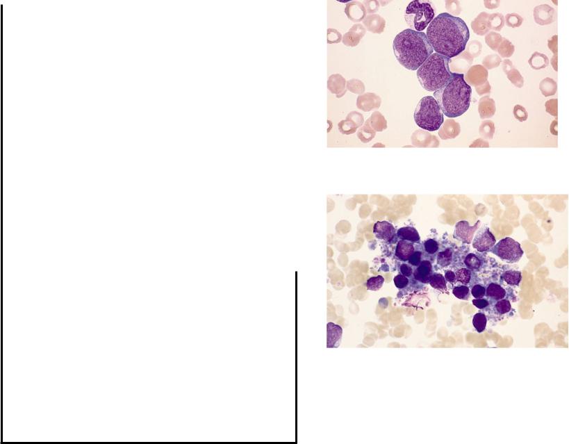 Мазок костного мозга другого пациента, мегакариобласты,микроформы мегакариоцитов и агрегаты тромбоцитов.