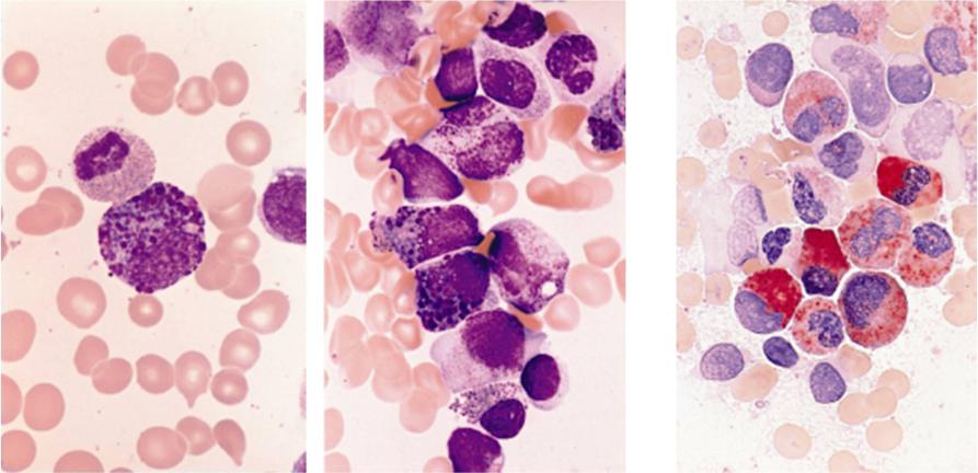 Окраска азур-эозином по Романовскому. Атипичные эозинофилы имеют базофильные гранулы