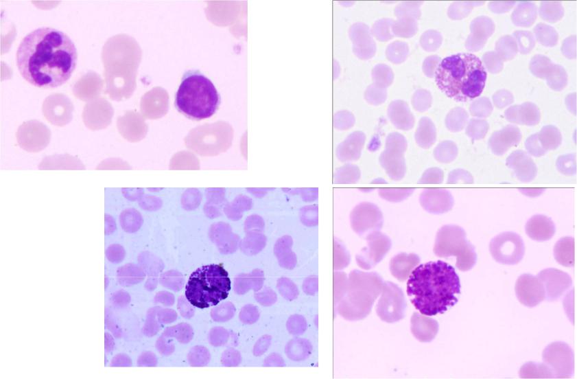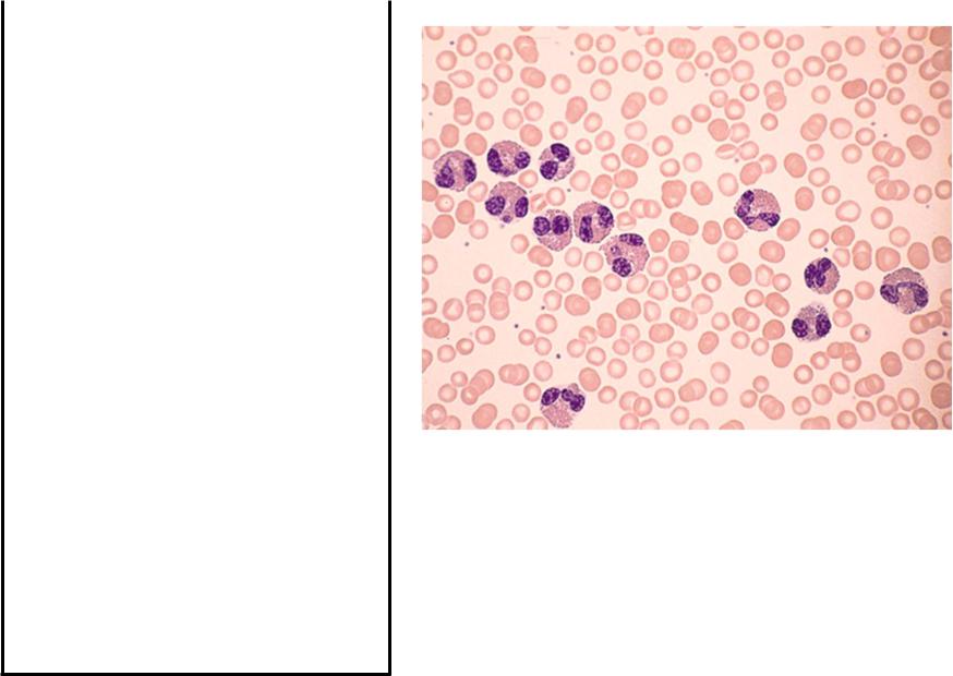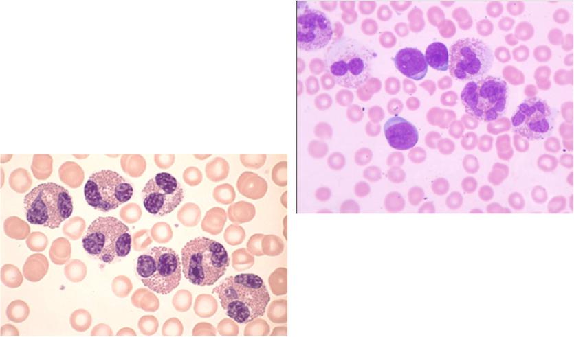 В кровициркулируютпалочкоядерные и сегменто-ядерные нейтрофилы,ядрапоследних обычносостоят из 3-4 сегментов.