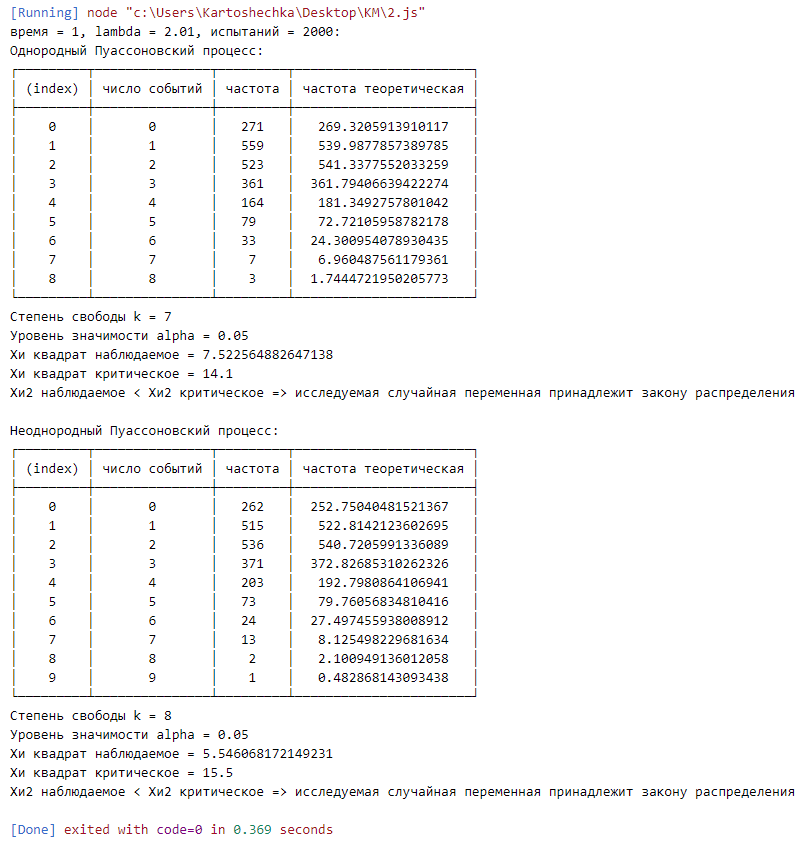 console.log(`время = ${time}, lambda = ${lambda}, испытаний = ${N}:`)