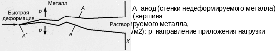 На поверхности стали, в том числе и у самой трещины, часто нет видимых продуктов коррозии и других признаков общего коррозионного разрушения.