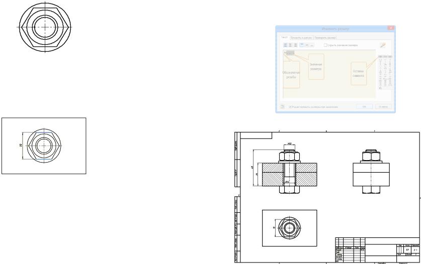 Рис. 4.107. Нанесение размера «под ключ» 18.Введите дополнительную информацию (обозначение резьбы,