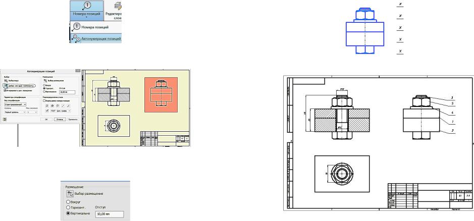 22.В диалоговом окне «Автонумерация позиций» выберите параметр «Вертикально» в области «Размещение» (рис. 4.112).