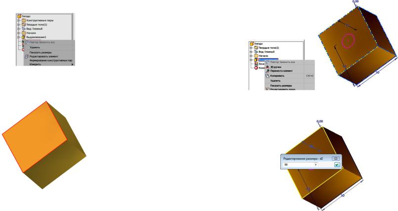 2.Выберите в «Браузере» элемент «Отверстие», нажмите ПКМ (правая кнопка мыши) и в плавающем нажмите на кнопку «Удалить»