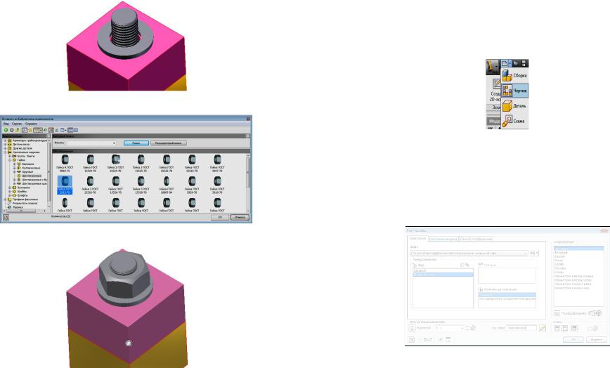 13.Вставьте гайку. Для этого повторите шаги вставки шайбы. В браузере выберите «Гайка М16 ГОСТ 5915-70» (рис. 4.31).