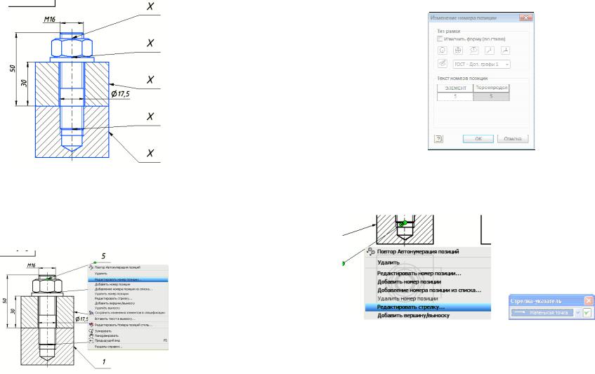 14.Автоматическое размещение позиций требует, как правило, редактирования отдельных позиций. Для этого укажите на номер позиции, подлежащий изменению, и нажмите ПКМ. В появляющемся плавающем меню выберите кнопку «Редактировать номера позиций