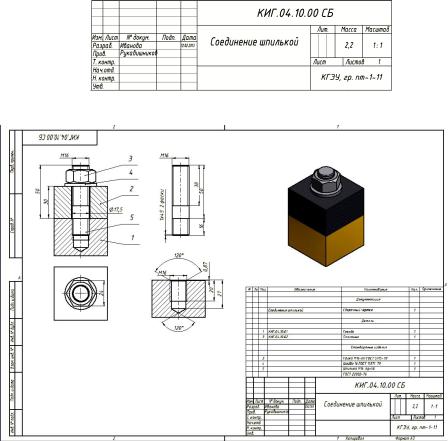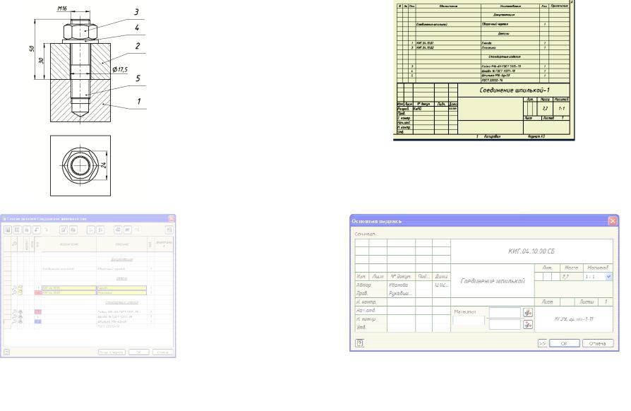 Рис. 4.49. Заполненная основная надпись На этом выполнение чертежа соединения шпилькой завершим.