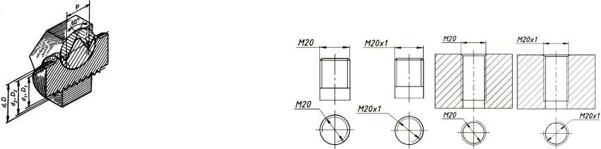 Рис. 1.8. Пример обозначения метрической резьбы на стержне и в отверстии