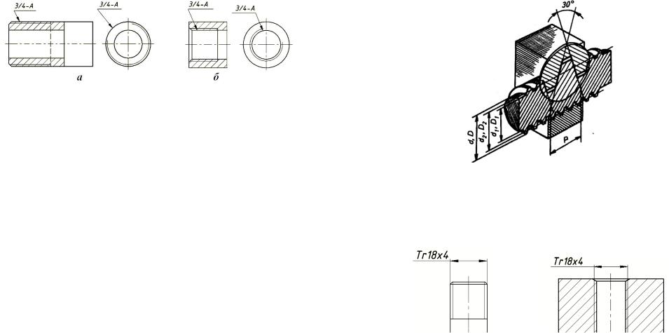 Упорная резьба (рис. 1.14). Профиль резьбы по ГОСТ 10177-82 – неравнобокая трапеция с углом рабочей стороны 3° и нерабочей – 30°. Этот же стандарт регламентирует и основные размеры резьбы. Допус-