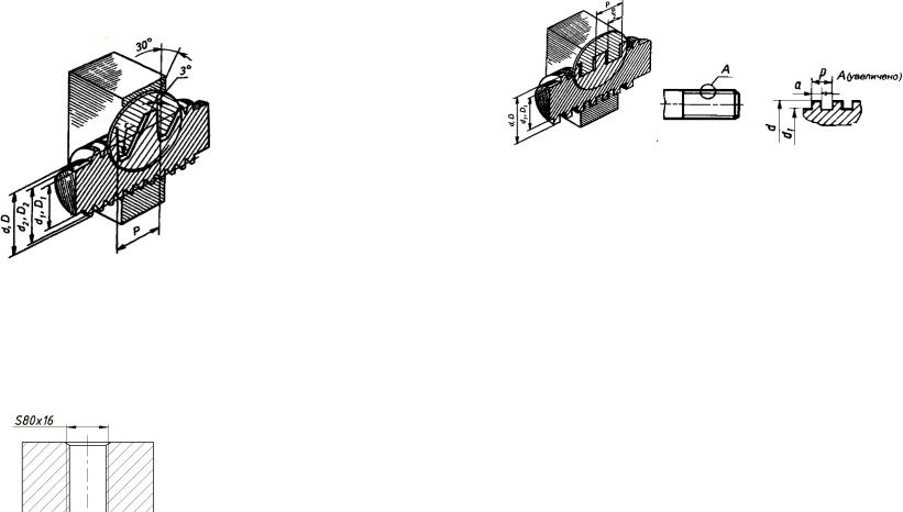 S 80 х 16 – 7h (S – упорная; 80 – номинальный диаметр; 16 – шаг; 7h – поле допуска);