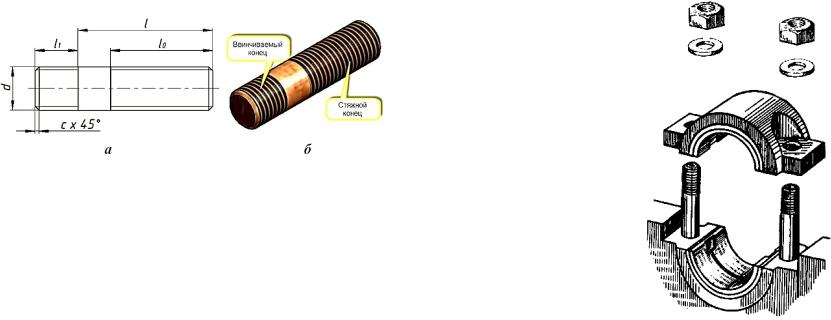 Резьбовой конец шпильки l1, ввинчиваемый в деталь, называется посадочным концом. Длина посадочного конца шпильки подбирается в зависимости от пластичности материала детали, в которую ввертывается шпилька (табл. 1.1).