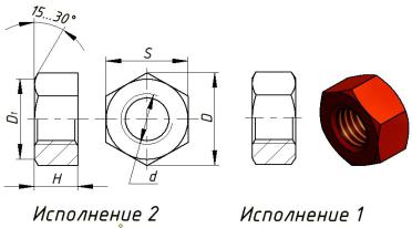 Пример условного обозначения шестигранной гайки 1 исполне-