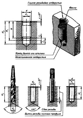 1.6.5. Глухие резьбовые отверстия под шпильку