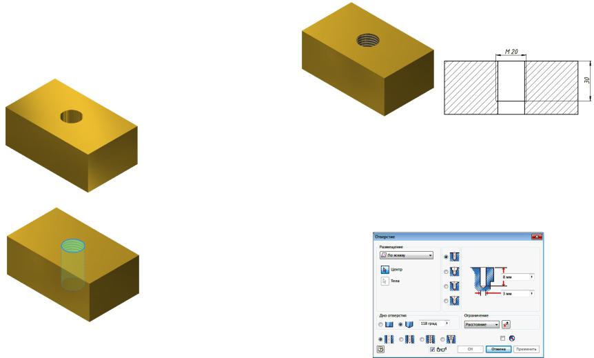 2.2. Создание резьбы в отверстиях с помощью команды «Отверстие»