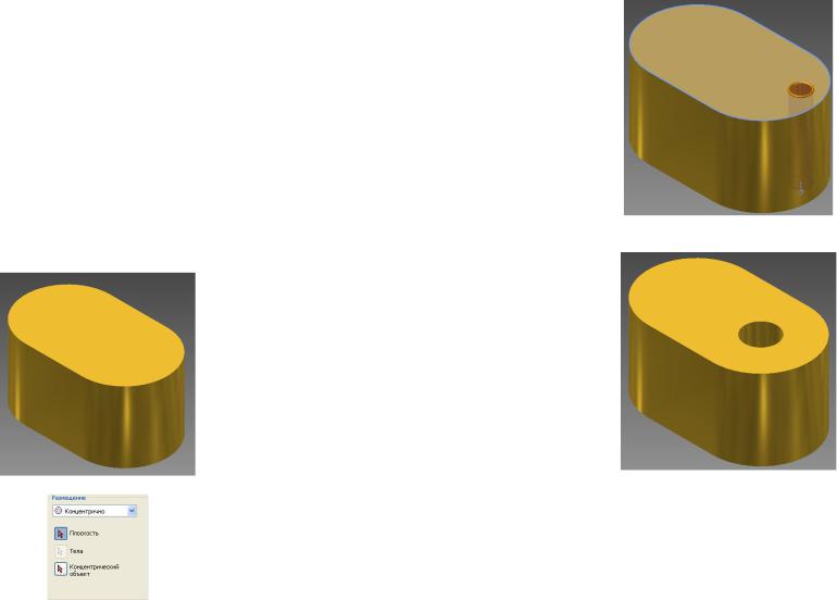 Концентрично — выберите грань или рабочую плоскость, на которой необходимо создать отверстие, а затем дуговое ребро или грань, центр окружности которой будет концентричен центру отверстия.