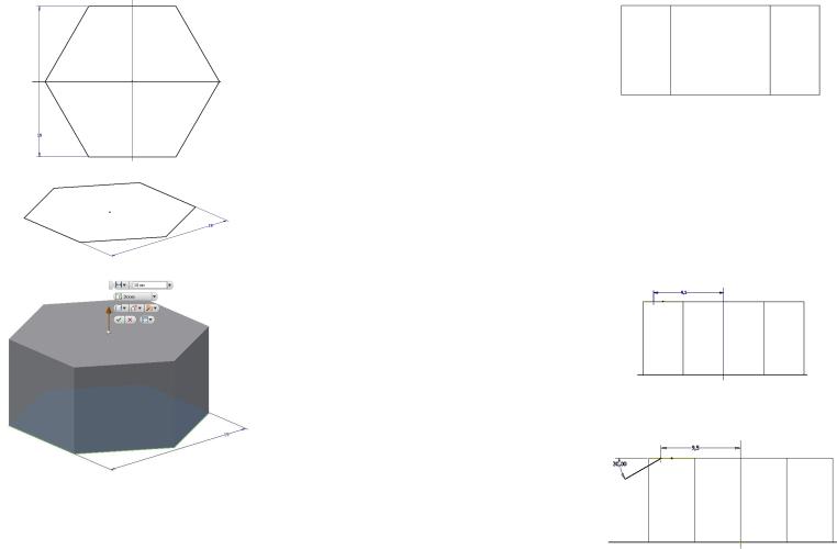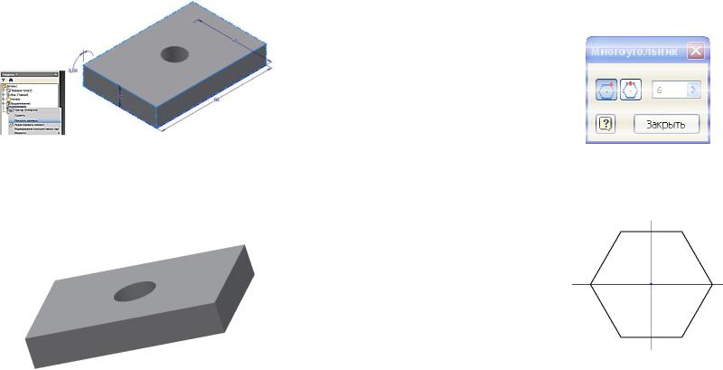 1.Постройте в плоскости X,Y шестиугольник с размером «под ключ» 46 мм. Для этого перейдите в режим выполнения эскиза. Выберите команду «Многоугольник». Появится диалоговое окно «Много-