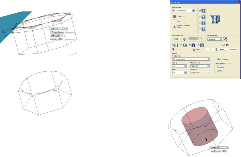 Рис. 3.25. Диалоговое окно «Отверстие» 12.Поместите центр отверстия концентрично фаске. Для этого в