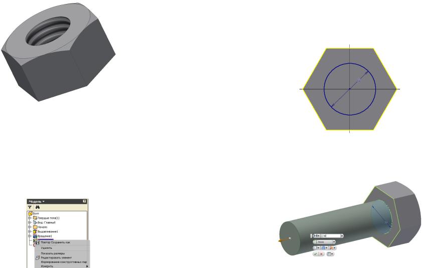 Для построения модели болта воспользуемся построенной ранее моделью гайки.