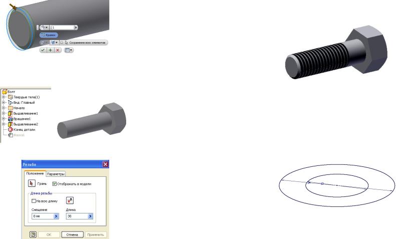появившемся диалоговом окне «Резьба» укажите длину резьбы 30 мм