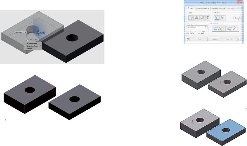 Рис. 3.50. Совмещение осей объектов 7. Вставьте шайбу. Для этого в среде «Сборка» щелкните на