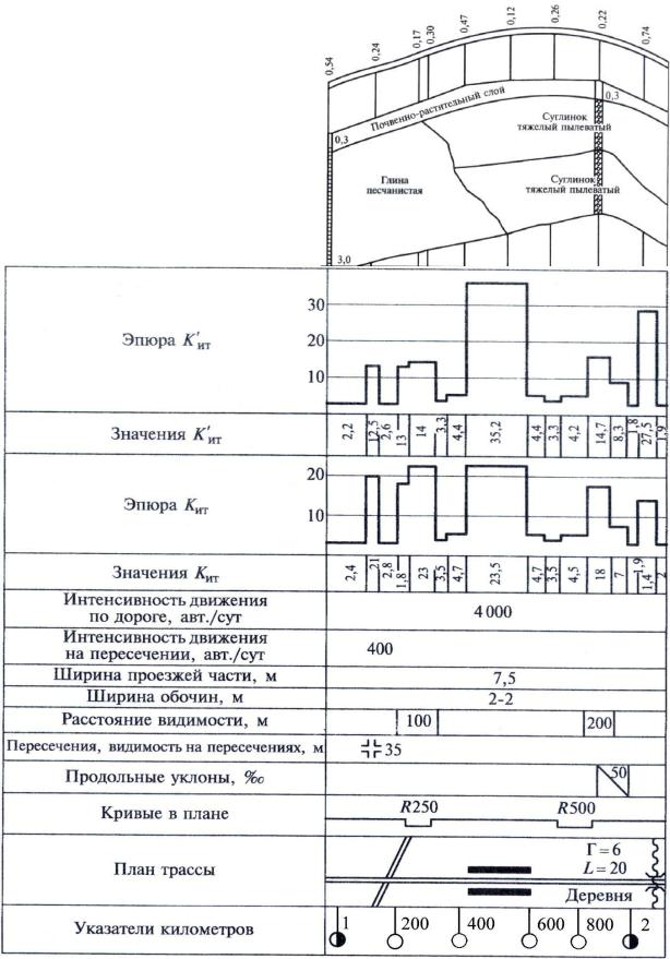 Продольный профиль дороги (или улицы) является изображением разреза дороги вертикальной плоскостью, проходящей через ось трассы. Продольный профиль характеризует величину проектных уклонов отдельных участков дороги и расположение ее проезжей части относительно естественной поверхности земли (рис. 1).