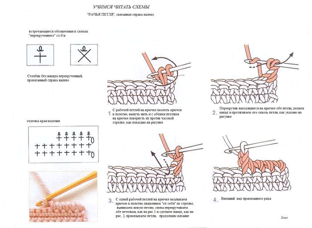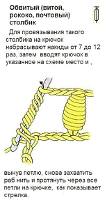 применятся витые столбики, рачий шаг и другое. Основа для вязания ракушки схема