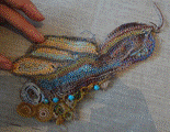 Вывязывание и пришивание на основу элементов фриформа, ткани, кожи.