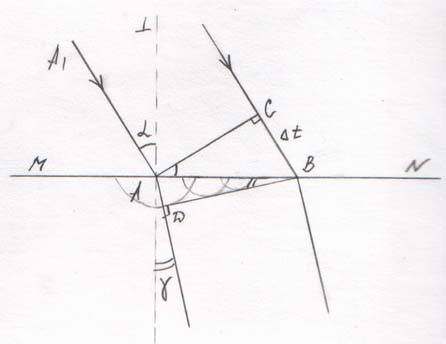 Расчеты показывают, что отношение синусов этих углов равно отношению скорости света в первой среде к скорости света во второй среде.