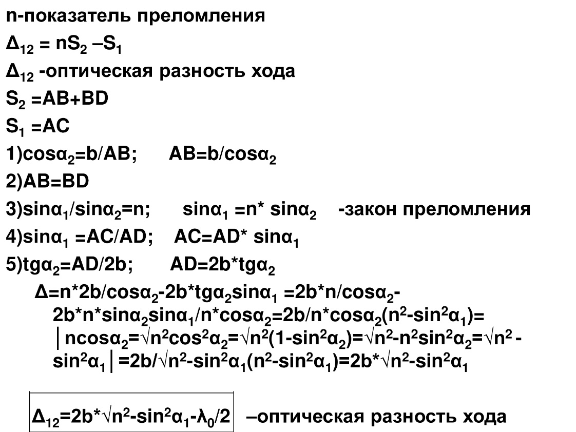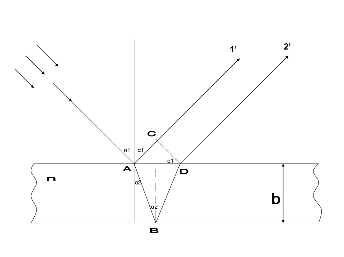 Оптическая разность хода D = 2(AC — AB) = 2l, где l — расстояние между