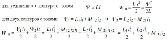 Wм –энергия [Дж], ψ – потокосцепление [Вб], М - взаимная индуктивность [Гн], L - индуктивность [Гн], i – сила тока [А],