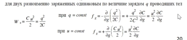 fg – обобщённая сила [Н], Wэ-энергия электрического поля [Дж], g-обобщённая координата [м]