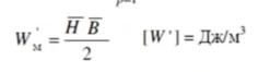 Wм –энергия [Дж], W'м – объёмная плотность энергии [Дж/м^3], H-напряжённость магн.поля [A/м], B-магнитная индукция[Тл], ψ – потокосцепление [Вб], i – сила тока [А].