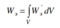 Wэ –энергия [Дж], W'э – объёмная плотность энергии [Дж/м^3], q – заряд [Кл], U – напряжение [В], D-электрическое смещение [Кл/м^2], Е-напряжённость эл. поля [Н/Кл = В/м].