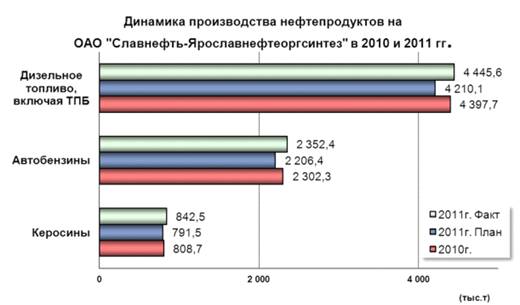 Рис 1.Динамика производства нефтепродуктов на «Славнефть-ЯНОС»