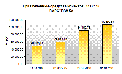 Привлеченные средства клиентов за 2007 год выросли на 54,7% и насчитывали к концу декабря 91,2 млрд. руб. В 2008 году продолжился рост, увеличение произошло на 17,3 % и наконец года достигло значения в 106,9 млрд. руб.