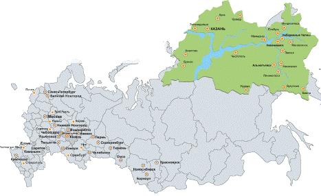 насчитывает 20 филиалов в Республике Татарстан, 22 филиалов в крупных городах
