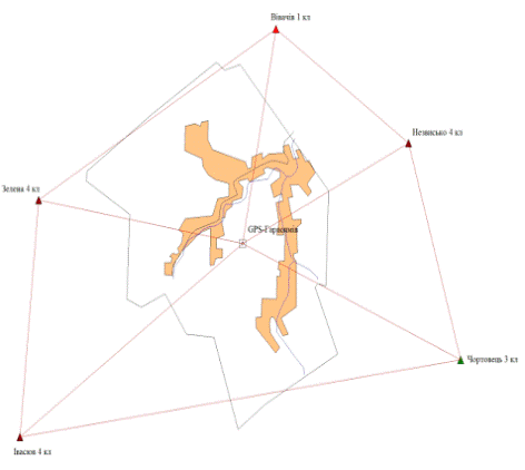 Рис. 3.3 Схема геометричної мережі при проектуванні пункту GPS-Гарасимів