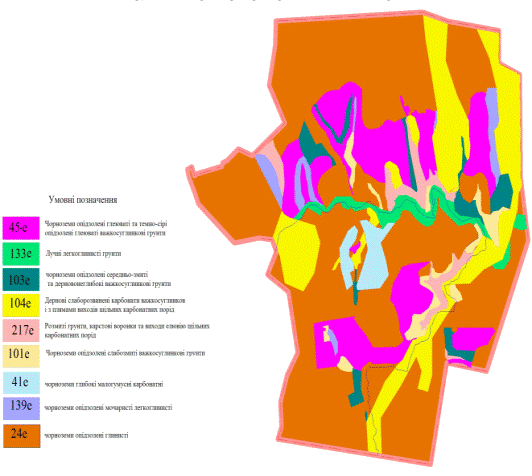 сільськогосподарських угідь (таблиця 3.3). Грунтова картосхема представлена на