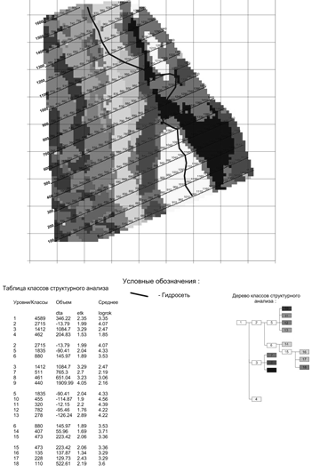 В результате факторного анализа была построена карта классов геофизических параметров (рис. 6.7), с системой уровней признаков и таблицей групповых параметров.