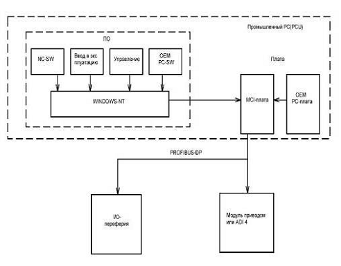Аппаратной базой для SINUMRIK 840D является промышленный ПК SIEMENS вместе с одной из разработанных Siemens плат PCI, то есть MCI (MotionControlInterface). В зависимости от варианта используемого промышленного ПК как опция может быть установлена различное количество плат OEM-PC(PCI или ISA).