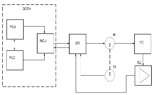 ) NC -это процессор системы ЭСПУ. Главная задача NC - вычисления траектории перемещения узлов станка и выдача задания приводам (положение, скорость, момент) в соответствии с технологической программой, обработка сигналов от измерительных систем (положения узлов станка, измерительных щупов, электронных маховиков ). На рисунке 2.2 представлена функциональная схема субблока