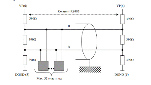 Рисунок 2.3 - Структура шинного сегмента RS485