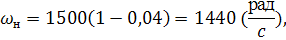 синхронная скорость при номинальной частоте напряжения (рад/с); ![]()