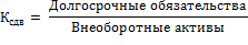 . К-т оборачиваемости основных средств - рассчитывается в количестве раз (к-т фондоотдачи). Характеризует эффективность использования предприятием имеющихся основных средств. Низкое значение показателя говорит о слишком больших капиталовложениях или недостаточном объеме продаж. Рассчитывается, как сумма выручки за год деленная на среднее значение суммы внеоборотных активов (основных фондов).