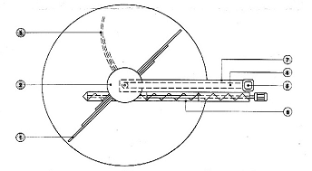 собой медленно вращающийся диск 2, с гибкими листовыми рессорами 1, которые при